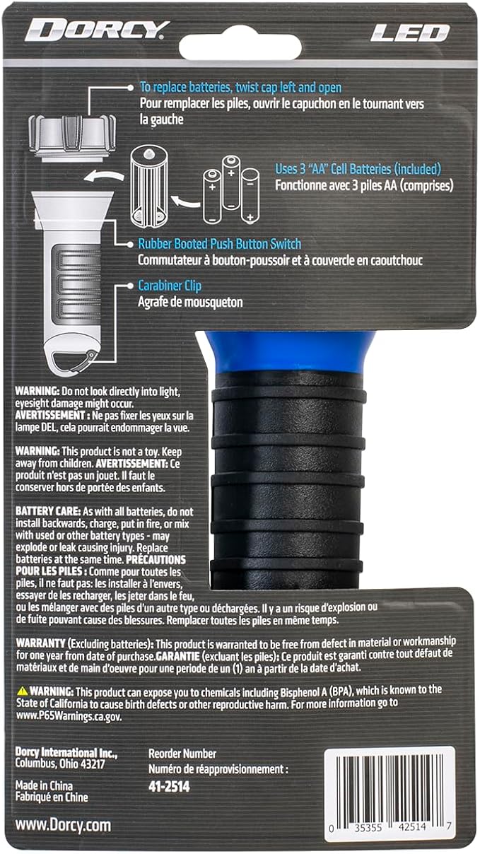 Dorcy 150 Lumen Floating Water Resistant LED Flashlight with Carabineer Clip, Blue (41-2514)