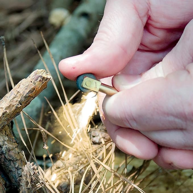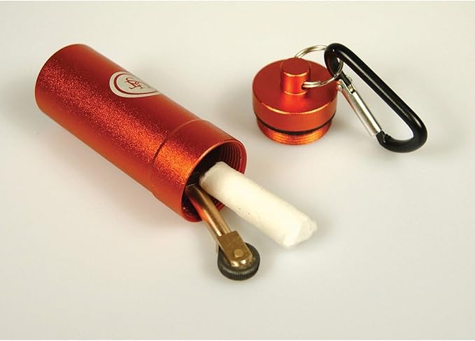 - RELIABLE: Durable, waterproof, anodized aluminum case with O-ring seal to keep contents safe and dry; Micro SparkWheel fire starter is made of high-quality brass and has 3 replacement flints; Carabiner clip to easily attach to gear.