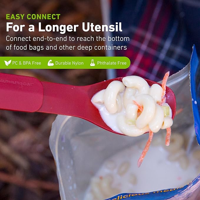 - Evolved Design - Connect spoon and fork end-to-end to reach dehydrated food bags or extra deep containers, plus utensils nest together for ultra compact storage