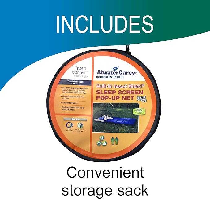 • One Atwater Carey Sleep Screen Pop-Up Mosquito Net with Permethrin Bug Repellent