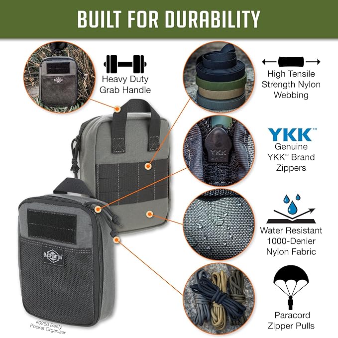 - [ Unmatched Durability ]: Crafted from rugged 1000-Denier ballistic nylon, the Beefy Pocket Organizer is water- and abrasion-resistant, ensuring your gear stays protected in the harshest environments.