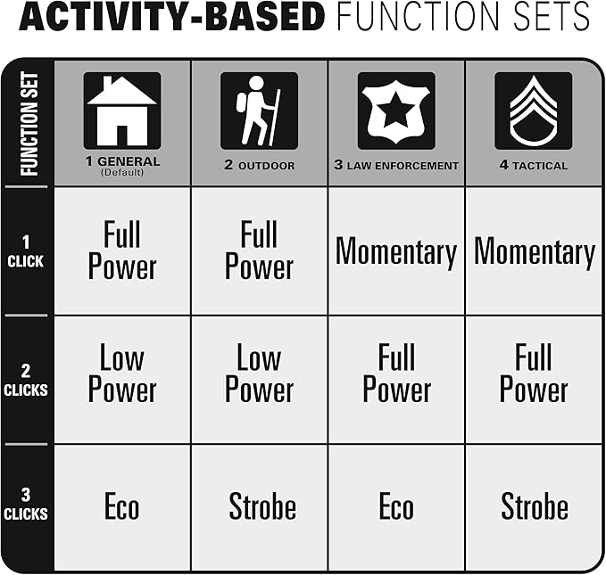 - Activity Based Function Sets include General, Outdoor, Law Enforcement and Tactical