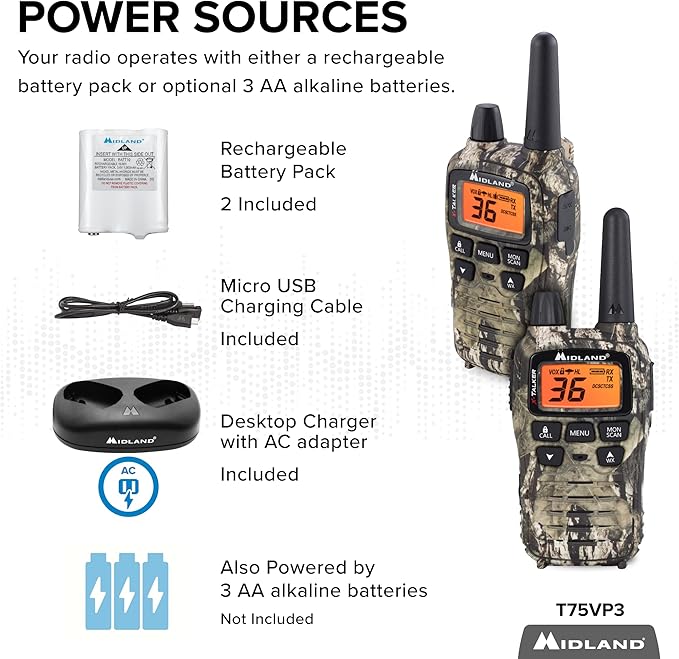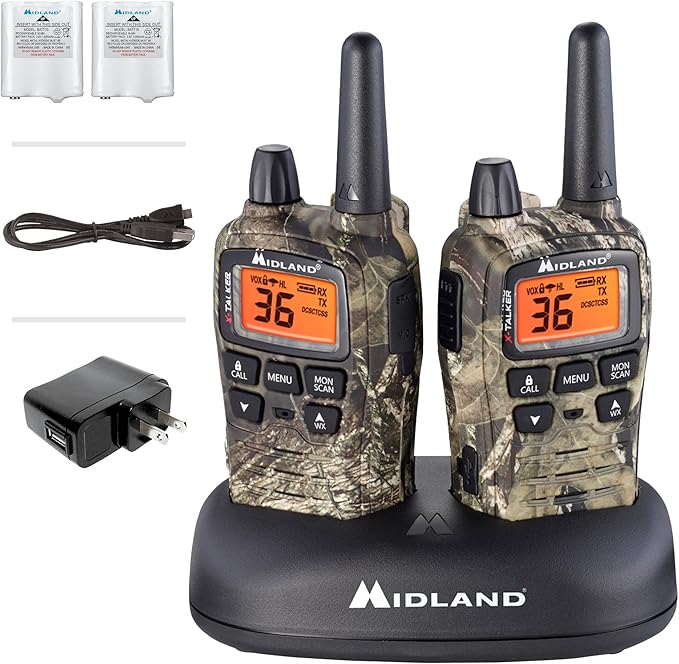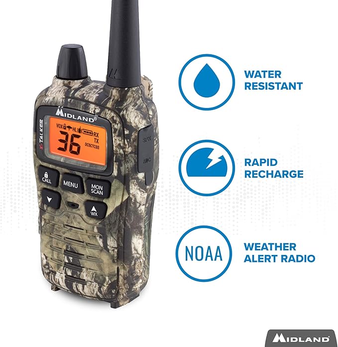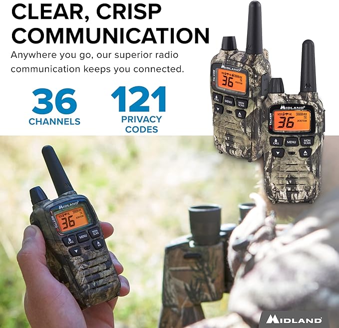 Midland® - T75VP3 - 36 Channel FRS Two-Way Radio - Long Range Walkie Talkie, 121 Privacy Codes, & NOAA Weather Scan + Alert - Mossy Oak Camo - Set of 2