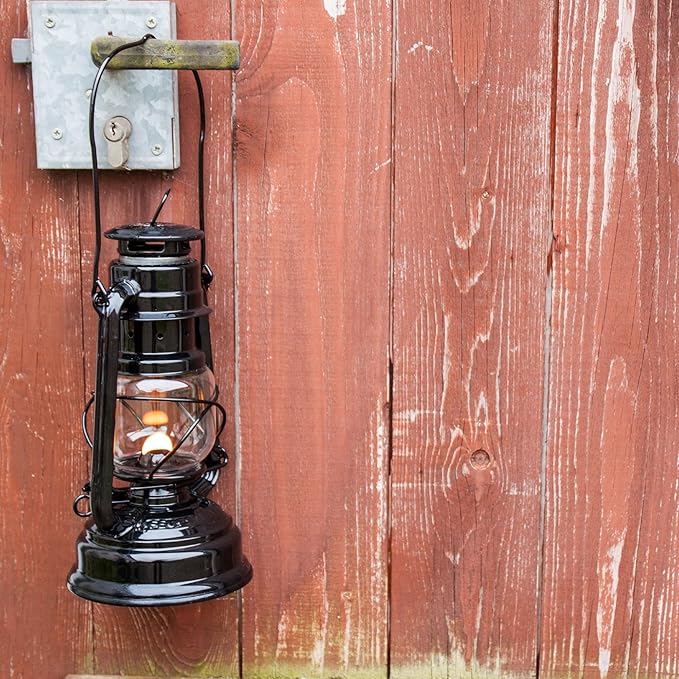 Outdoor Kerosene Fuel Lantern, German Made Weather Resistant Baby Special 276 Galvanized Hurricane Lamp for Camping or Patio, 10 Inches, Black