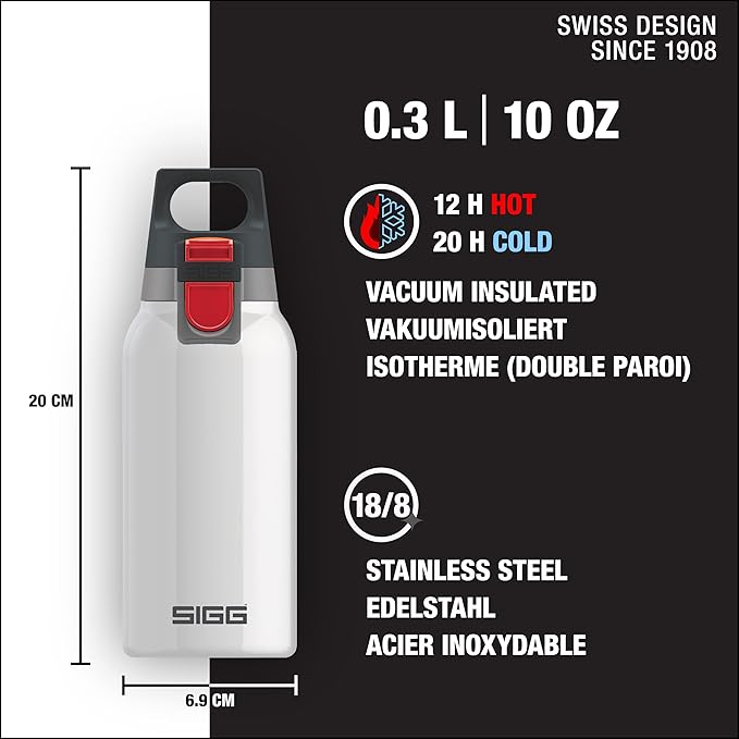 SIGG - Insulated Water Bottle White - Thermo Flask Hot & Cold One with Tea Infuser - Leakproof - BPA Free - 18/8 Stainless Steel - 10 Oz