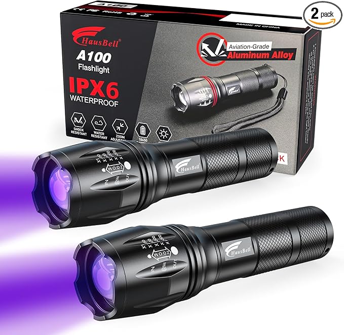 HAUSBELL 365 nm UV Flashlight Black Light Flash Light, Zoomable Blacklight Flashlights with Five Modes for Dog Cat Urine Detection and Emergencies, UV 2 Pack