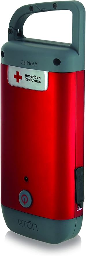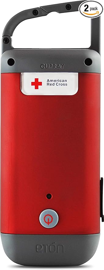 Eton - American Red Cross Clipray Crank-Powered, Clip-On Flashlight & Smartphone Charger,Cherry Red,Hand Crank, Hands Free Carabiner Clip, Pack of 2