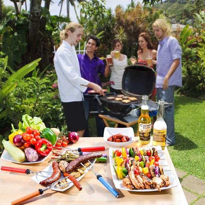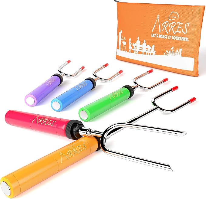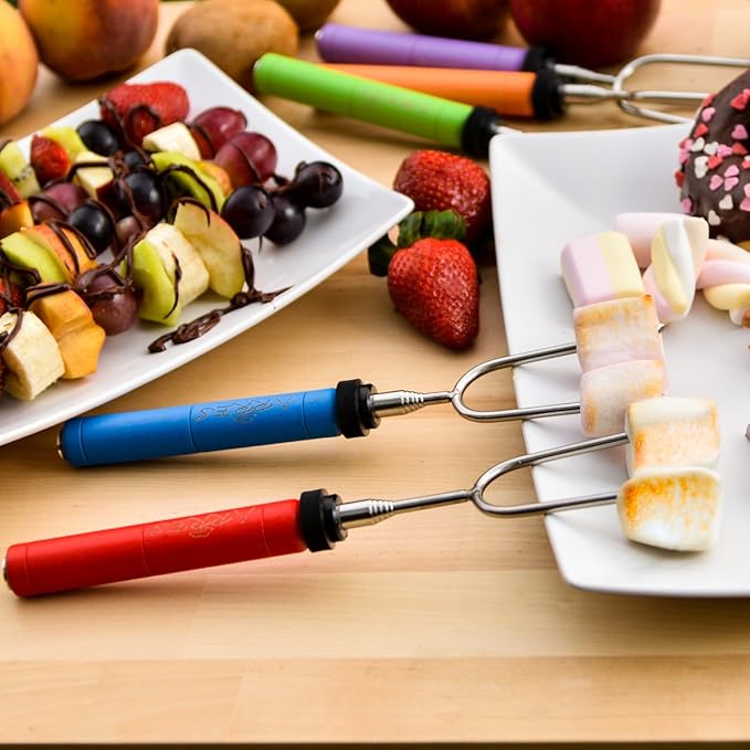 - Seek feedback: Inquire about others' experiences with our marshmallow roasting sticks. Customers have shared comments such as: "Delighted grandchildren," "The included Recipe Ebook is a hit," "These extendable camping skewers are a fantastic camping addition," "My children adore them," and "Ideal gift for lake houses!" What's more? These marshmallow roasters are not only convenient for storage and travel, collapsing from 34 inches to a mere 10 inches, but they are also perfect for cookware prese