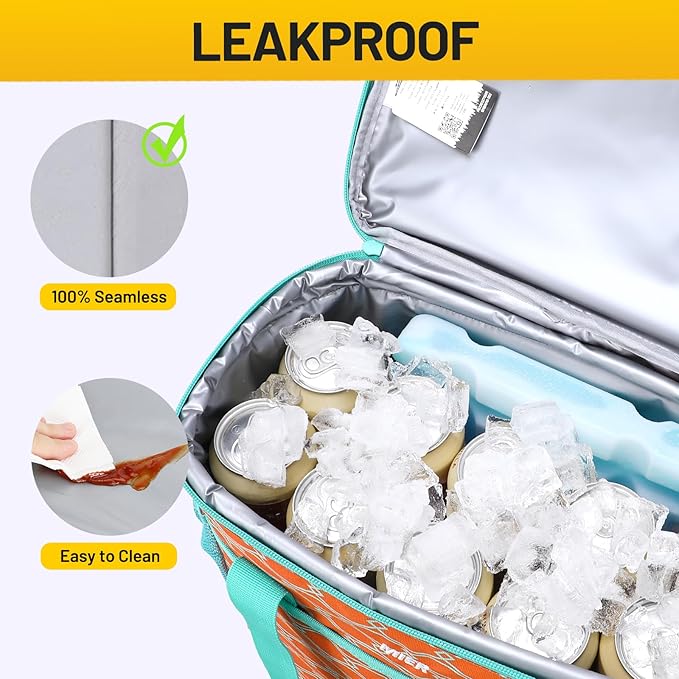 - Insulated and Waterproof Lunch Cooler ---- Heat-welded seams prevent flexible liner leaks; Easy-to-clean permanent, flexible, soft PEVA liner and food safety