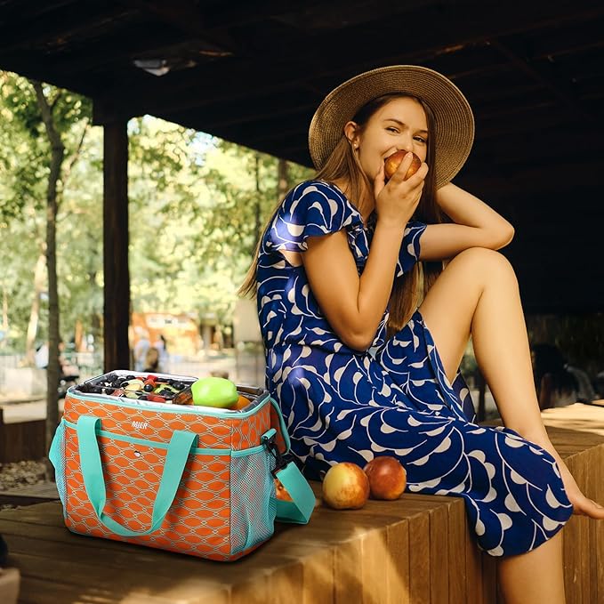 MIER 18L Large Soft Cooler Insulated Picnic Bag for Grocery, Camping, Car, Bright Orange Color