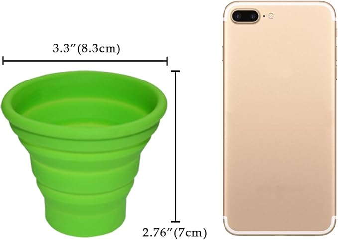 - Size & Volume - Size: 3.2" (8.3cm) in diameter and 2.8" (7cm) in height when expanded. Volume: 5 oz (150ml)
