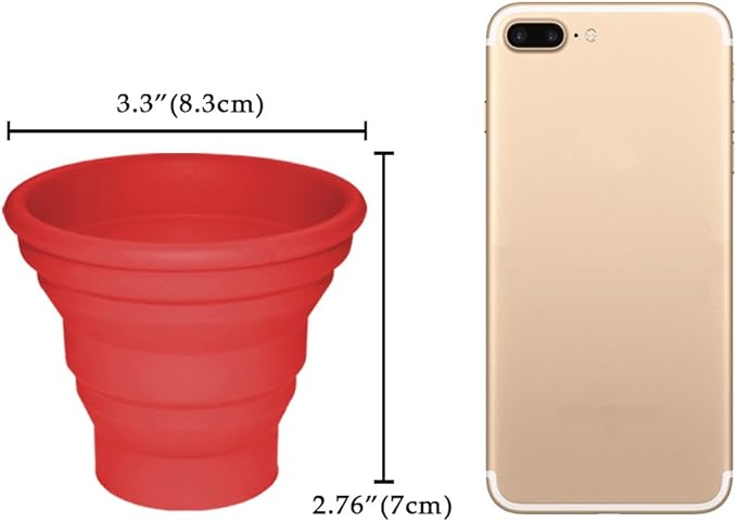 - Size & Volume - Size: 3.2" (8.3cm) in diameter and 2.8" (7cm) in height when expanded. Volume: 5 oz (150ml)