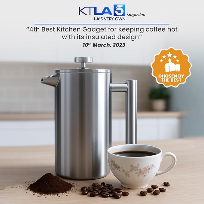- Sleek Stainless Steel – The coffee maker is created using 304 grade stainless steel, with a smooth and durable finish and carefully designed to give you the French press you need.