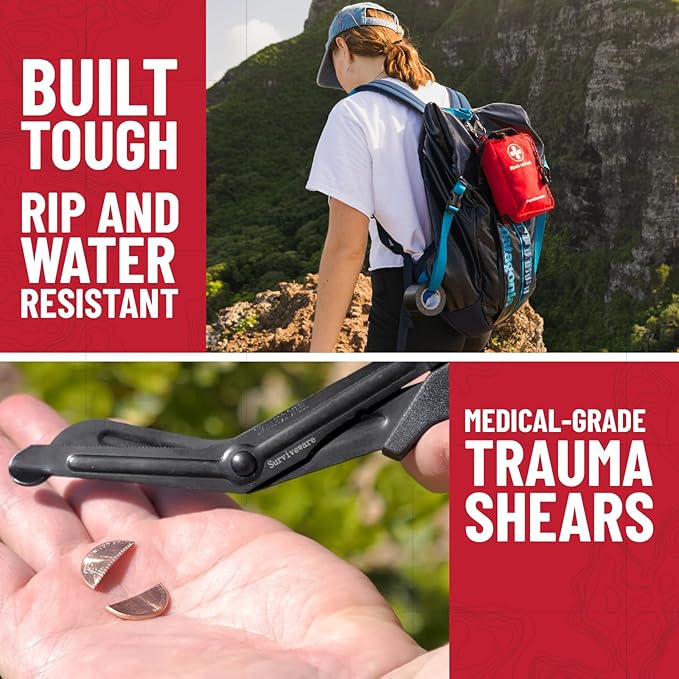 - MADE BY EXPERTS: Designed by adventurers for adventurers. This emergency first aid kit was thoughtfully designed for peace of mind on your next outdoor adventure. This product is FSA / HSA eligible.