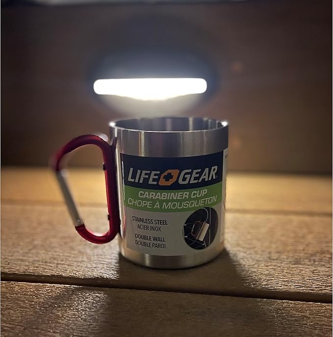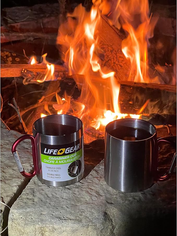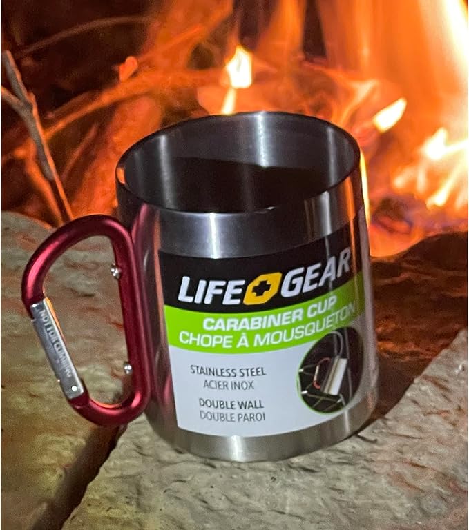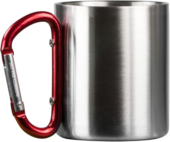 Life Gear Stainless Steel Double Walled Mug with Carabiner Handle - Portable Rockclimbing, Hiking, Backpacking or Camping Travel Cup 10 oz