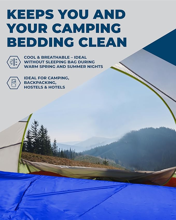- KEEPS YOU AND YOUR CAMPING BEDDING CLEAN: Increase the longevity of your sleeping bag by protecting it from bacteria, sweat and other potential contamination. Bring it on your camping/backpacking trip to have it ready for camp and hostels to discourage those nasty bed bugs.
