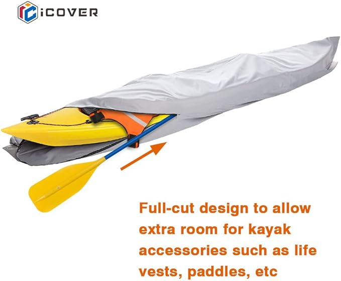 iCOVER 10ft Kayak Cover- Water Proof 600D Heavy Duty Kayaks/Canoe Covers Fits Canoes or Paddleboards up to 10ft Long and Beam Width up to 27in, Grey