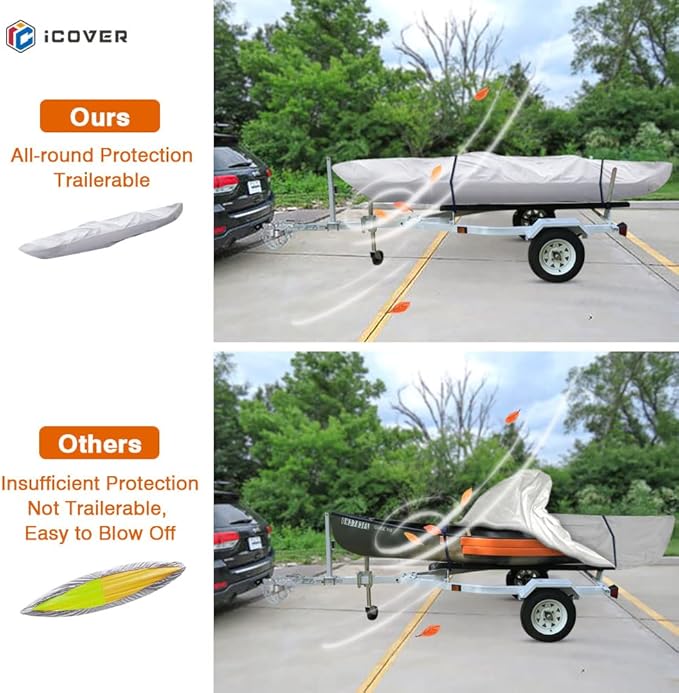 - Easy Carrying and Fast In and Out: Features sturdy strap handles sewn at each end for easy carrying. The zipper extends almost halfway, allowing effortless sliding of your kayak or canoe inside and closing it for complete coverage and protection against rain, snow, spiders, leaves, and branches