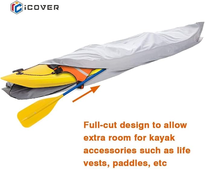 i COVER 16ft Kayak Cover- Water Proof 600D Heavy Duty Kayaks/Canoe Covers Fits Canoes or Paddleboards up to 16ft Long and Beam Width up to 36in, Grey