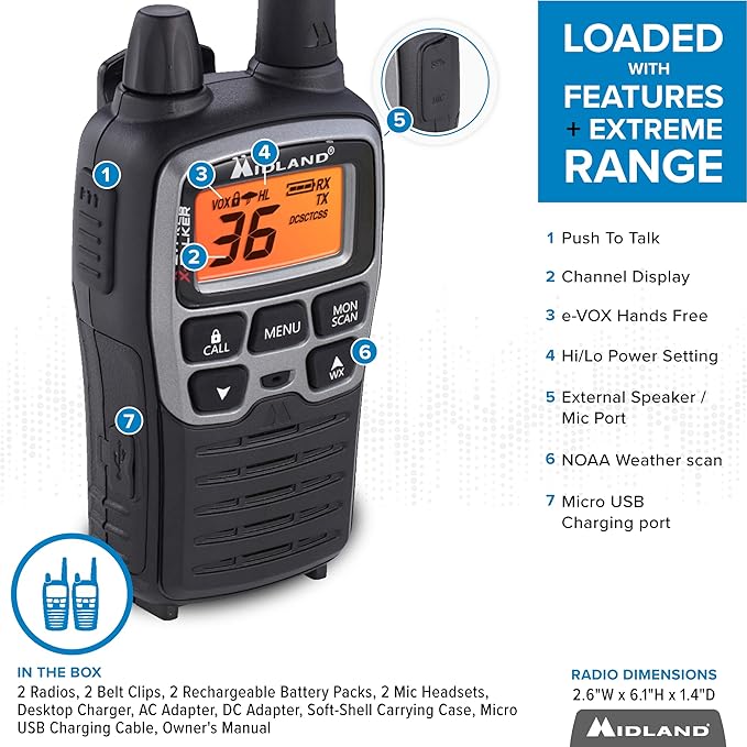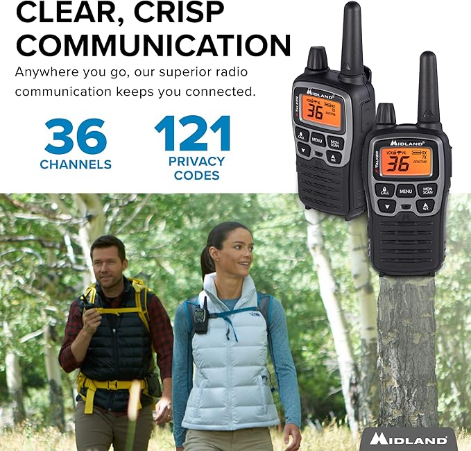 - Xtreme Range: Longer-range communication in open areas with little or no obstruction. Midland, a trusted name in two-way radios, these walkie-talkies are engineered for durability and reliability, ready to withstand your wildest outdoor escapades. Enjoy long-range communication, allowing you to stay connected over extended distances and explore without limits. These walkie-talkies work seamlessly with FRS radios, enabling communication with your friends, RV Buddies, or Caravanning adventurers.