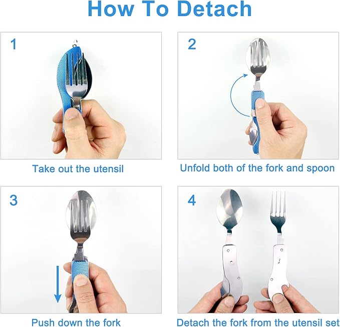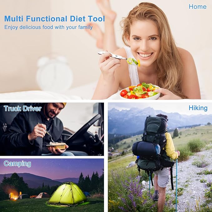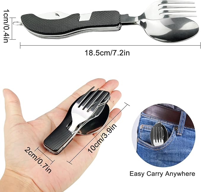 - Multi-functional Design: Enjoy our portable utensils with fork, spoon, knife, and bottle opener. Ideal for travelers and picnics, this foldable set is perfect for backpacking trips, BBQs, and more outdoor activities.