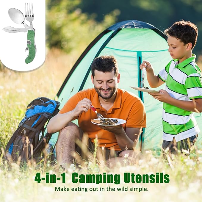 - Carry Effortlessly: Slip this lightweight, compact 4-in-1 camping utensil set into your bag. Perfect for any camping trip, hike, or outdoor adventure. These backpacking utensils are essential for outdoor events, fitting perfectly with your camping gear.