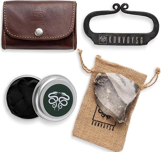 - Flint & Steel Legacy: Ignite the wilderness with KonvoySG's hand-forged carbon steel striker and English flint stone, mastering traditional firecraft like a pro.