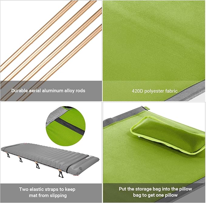 - ★【Off Ground】 Enjoy comfort of a bed to the outdoors; Sleep free from rocks and other uneven surfaces when you use it; Don't worry about leaking like an air pad. You deserve a good night’s sleep when you’re camping.