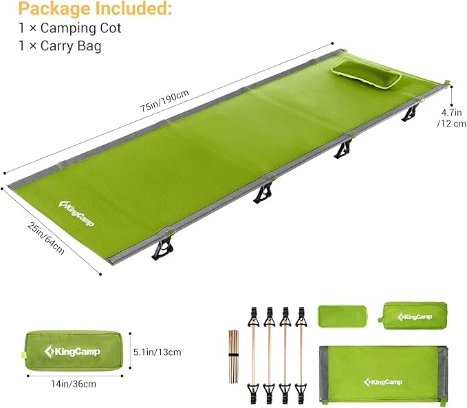 - ★【Ultralight & Portable】 Only 4. 9 lbs and packed Size: 14 × 5. 1 × 5. 1 inches, this camping cot is highly portable and space-saving! Wherever your adventure is, this smart light camp-cot can be stored in your backpack.