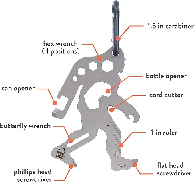 UST Tool-a-Long Multi-Tool Carabiners with Durable, Compact Stainless Steel Construction for Hiking, Kayaking, Camping, Travel and Outdoor Survival