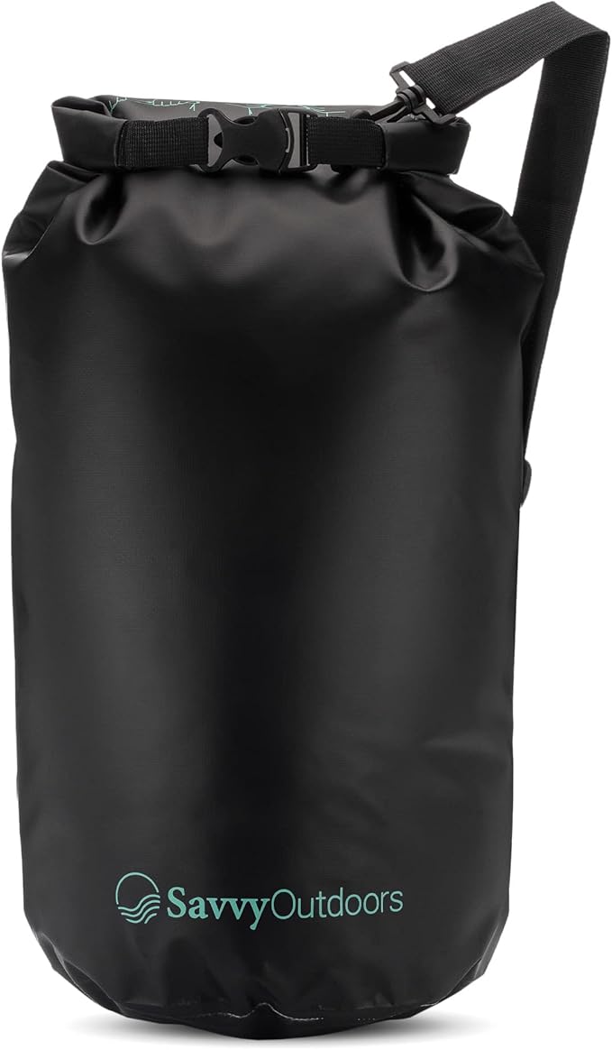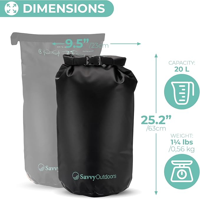 Savvy Outdoors Waterproof Dry Bag - Dry Bags for Food & Gear, Stuff Sacks for Backpacking and Camping Equipment, Waterproof Bag for Beach, Boating, Kayaking (20L, Black)