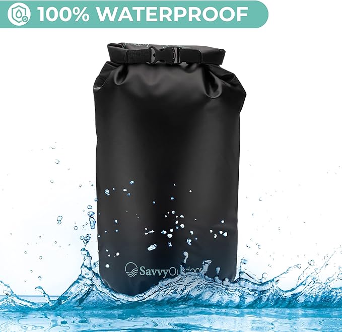 - QUALITY MAKE AND DESIGN: Savvy Outdoors' durable dry sack is made of 100% waterproof polymer. Its seams are electronically welded and it has a roll-up closure /clasp to prevent any moisture, dirt, or sand away from its contents. It could even float if accidentally dropped on water!