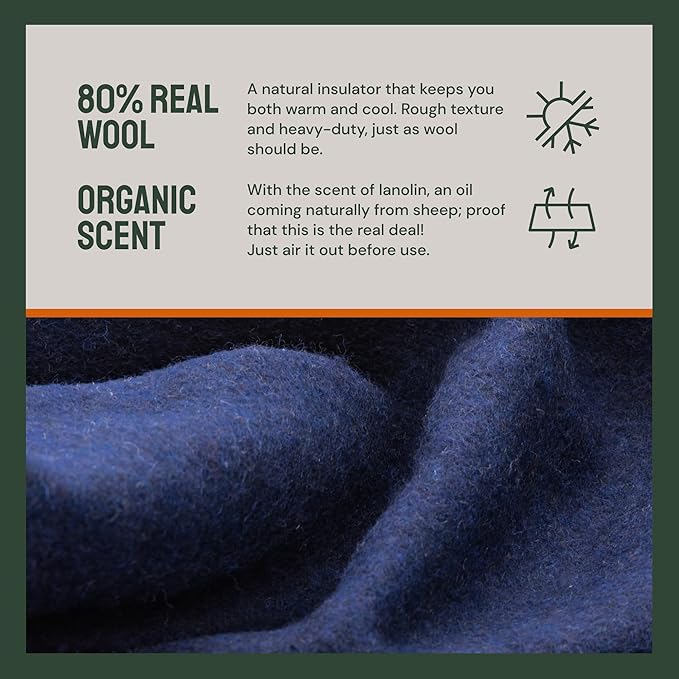 Woolly Mammoth Merino Wool Blanket - Large 66" x 90", 4LBS Camp Blanket | Throw for the Cabin, Cold Weather, Emergency, Dog Camping Gear, Hiking, Survival, Army, Outside, Outdoors – Navy Blue