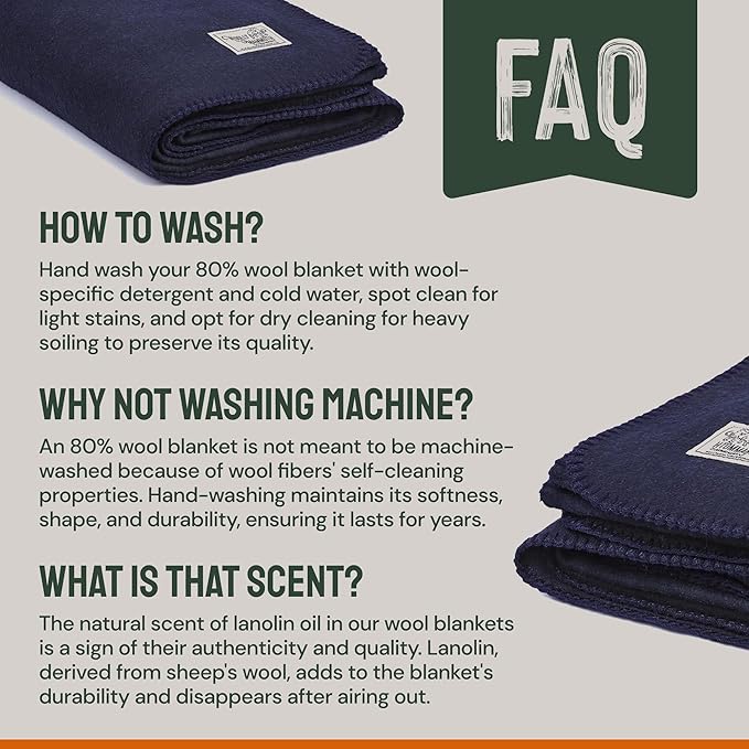 - EASY MAINTENANCE: Our blankets are low-maintenance, thanks to their self-cleaning wool fibers. Spot cleaning and a good shake go a long way. Machine washing may damage them due to the high-quality wool content, causing shrinkage and a loss of softness. Treat them with the love and care they deserve!