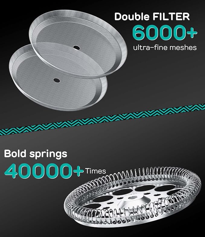 - Unique & next level design, The coffee french press is uniquely designed to keep sediment out of your cup while letting the delicious coffee oils into it. This results in a richer, full-bodied brew that will leave you grinning from ear to ear