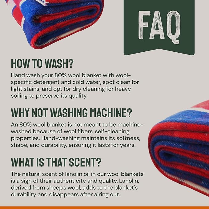 - EASY MAINTENANCE: Our blankets are low-maintenance, thanks to their self-cleaning wool fibers. Spot cleaning and a good shake go a long way. Machine washing may damage them due to the high-quality wool content, causing shrinkage and a loss of softness. Treat them with the love and care they deserve!