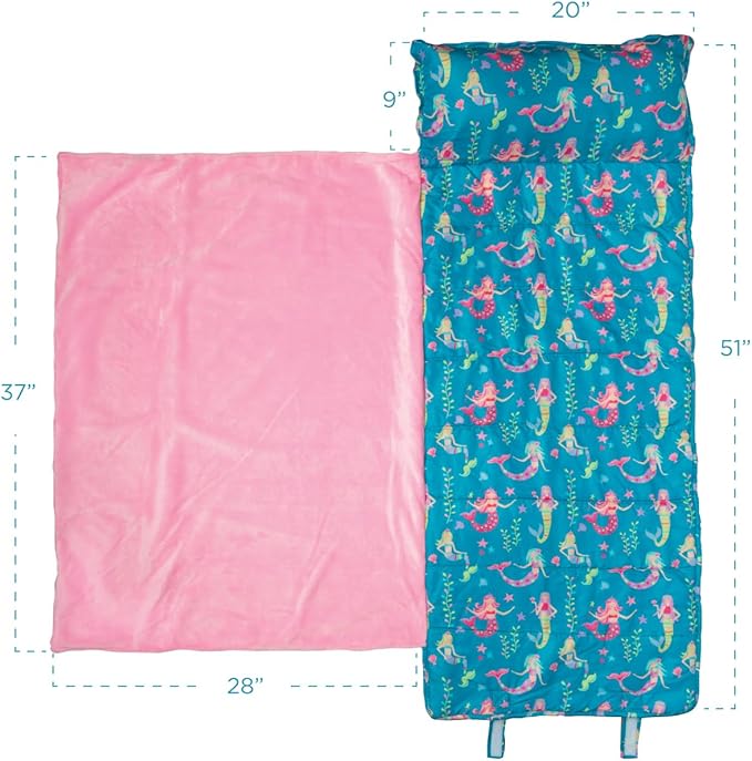- PERFECTLY SIZED: Measuring 20”x 50” with an extra wide 38” blanket, this is the perfect nap mat for your little dreamer. Attached straps make carrying easy for kids without sacrificing comfort.