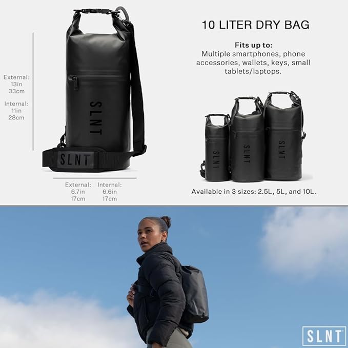 - Great for Travel, Outdoors, & Long-term Storage: The 2.5 Liter bag has internal use dimensions of 11.02 x 6.69 x 6.69inches. Fits all modern smartphones, small tablets or laptops, wallets, keys, and accessories. Has a quick and easy roll down and clip closure. A great dry bag for outdoor lifestyles and travel, perfect for kayaking, boating, camping, beach trips, swimming, or the gym. Keep your devices away from wet clothes and away from hackers!
