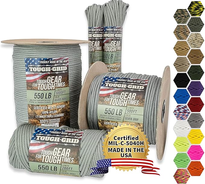 - PEACE OF MIND IN ANY SITUATION: Trust TOUGH-GRID Parachute Cord to provide reliable performance when it matters most. Made in the USA with pride and craftsmanship, our cord offers peace of mind, knowing you have the toughest cord around, ready to tackle any outdoor challenge.