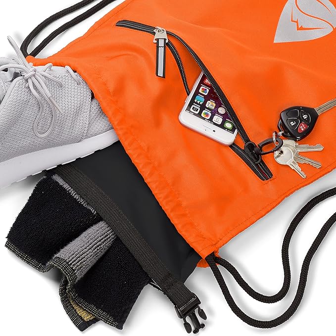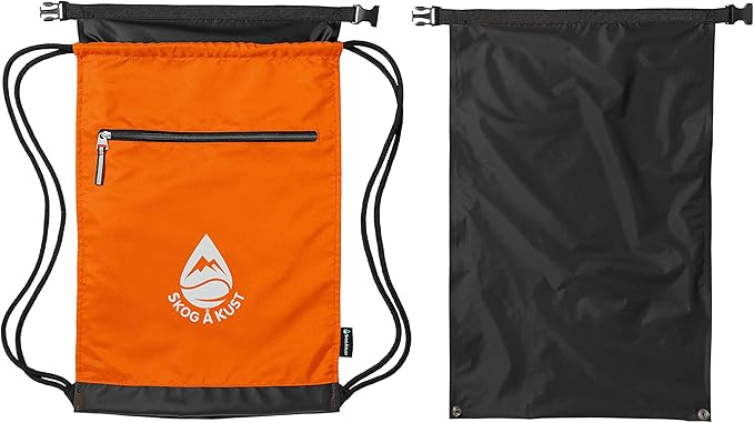 Skog Å Kust GymSak | Patented 2-in-1 Drawstring Cinch Bag with Removable Waterproof Dry Bag | Orange