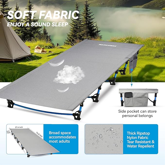 MARCHWAY Ultralight Folding Tent Camping Cot Bed, Portable Compact for Outdoor Travel, Base Camp, Hiking, Mountaineering, Lightweight Backpacking (Grey)