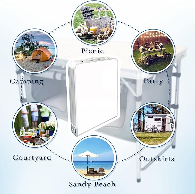 • Ideal for camping, picnics, tailgating, or backyard barbecues, this portable table is a versatile addition to your outdoor gear collection.;Note:the table can't stand the rain