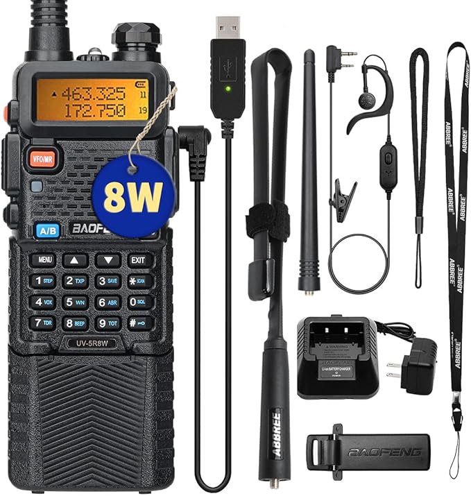 - 【Professional Ham Radio】High/Medium/Low Power TX Selectable,Max Power:8Watts.Dual band/Dual display/Dual standby,128 groups of storage channels,50 CTCSS and 104 CDCSS,AUTO Keypad Lock,LED Flashlight; FCC ID: 2AJGM-UV5R.