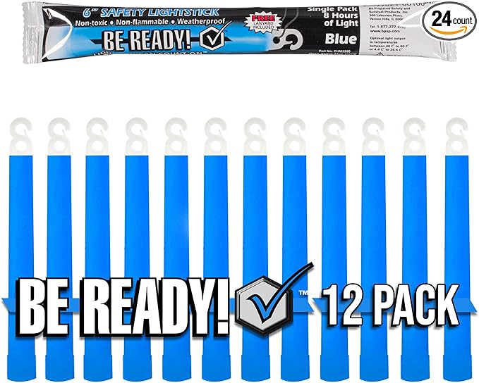 Be Ready 12 Pack Blue Chemical Light Industrial Glow Sticks - Blue