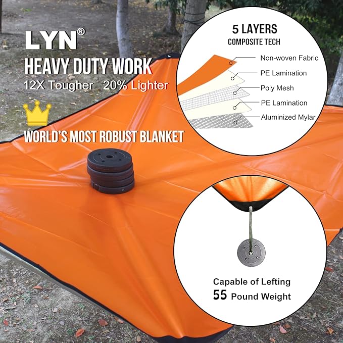 LYN Heavy Duty Emergency Blanket Survival Gear Waterproof Insulated Blanket Emergency Tarp for Camping, Hiking, Bushcraft