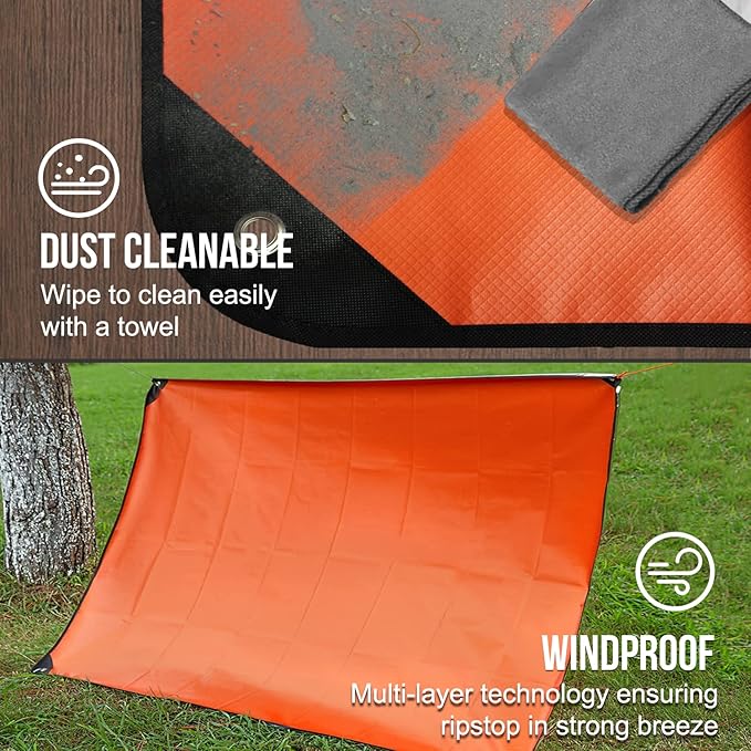 - 🚨【Waterproof, Windproof】 Water Resistant Surface Effectively Keeps Dry In The Wild. Tear Resistant in Storms.