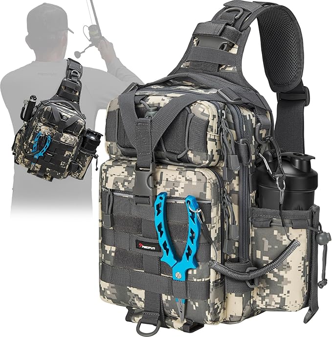 Piscifun Tackle Bag With Rod & Gear Holder - Lightweight Sling Storage Bag, Outdoor Shoulder Pack for Fishing, Hiking, Hunting