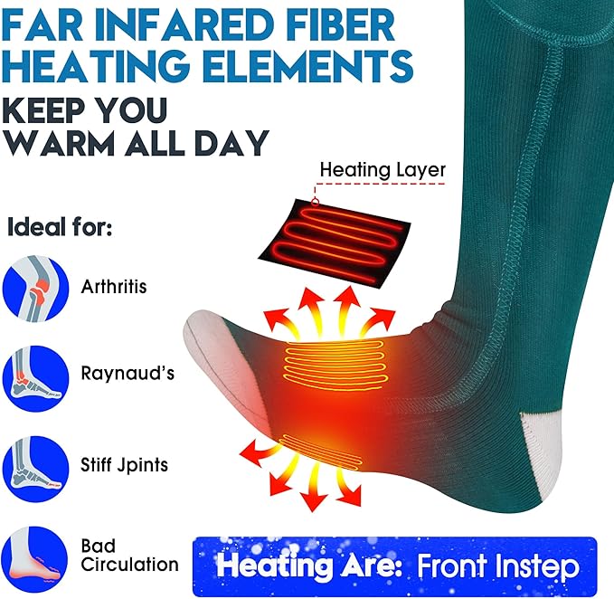 - 【𝐀𝐮𝐭𝐨𝐜𝐚𝐬𝐭𝐥𝐞 𝐏𝐫𝐞𝐦𝐢𝐮𝐦 𝐌𝐞𝐧 𝐖𝐨𝐦𝐞𝐧 𝐖𝐢𝐧𝐭𝐞𝐫 𝐇𝐞𝐚𝐭𝐞𝐝 𝐒𝐨𝐜𝐤𝐬】Autocastle Battery Heated Socks Electric Rechargeable Heat Sox Kit for Men Women,Winter Warm Heat Insulated Thermal Heating Stockings,Novelty Sports Outdoor Climbing Hiking Hunting Biking Ski Heated Foot Warmers.Autocastle Heated Sox Cycling Feet Warmers Made From Premium Spandex Fabric Cotton,Breathable,Quick Drying,Heat Insulated.Heated Area:Front Instep.