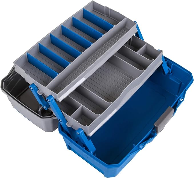Flambeau Outdoors 6382TB 2-Tray Tackle Box - Classic Fishing Lure Storage Organizer, Medium Portable Tackle Box, 15 Tray Compartments, Blue/Gray
