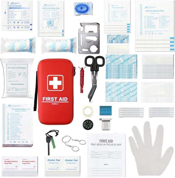 SHBC Compact First Aid Kit (139 Piece) Adventure Medical Kits Waterproof- Includes Emergency Blanket, Fire Starter, Compass, Wire Saw for Survival, Home, Car, Camping, Hiking, Hunting, Sport